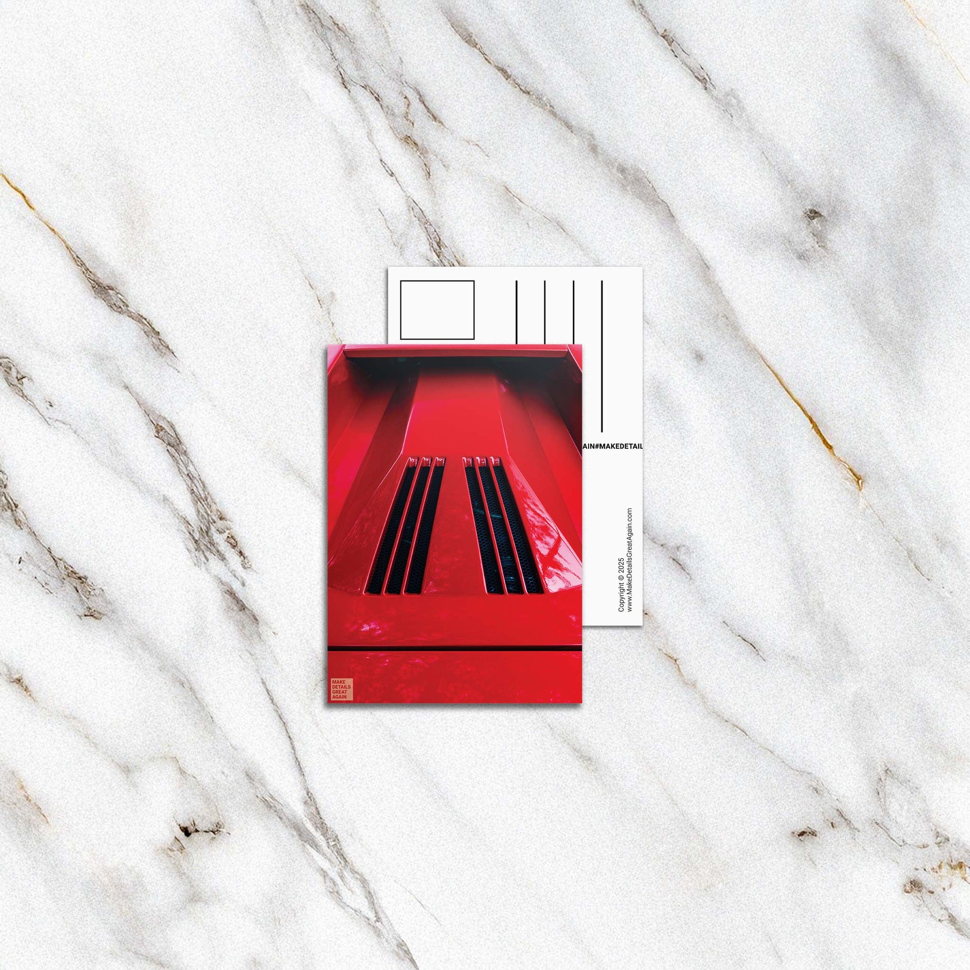 Celebrate the artistry of automotive design with this stunning postcard featuring a close-up detail of the iconic Lamborghini Countach 25° Anniversario.
