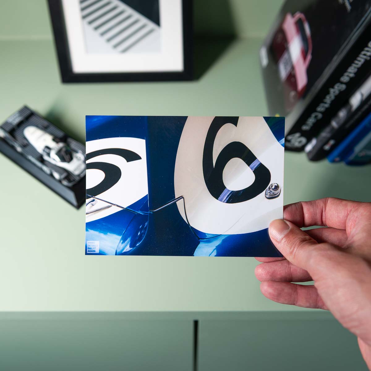 Captures the essence of iconic car details: this postcard is a tribute to the craftsmanship of automotive history.