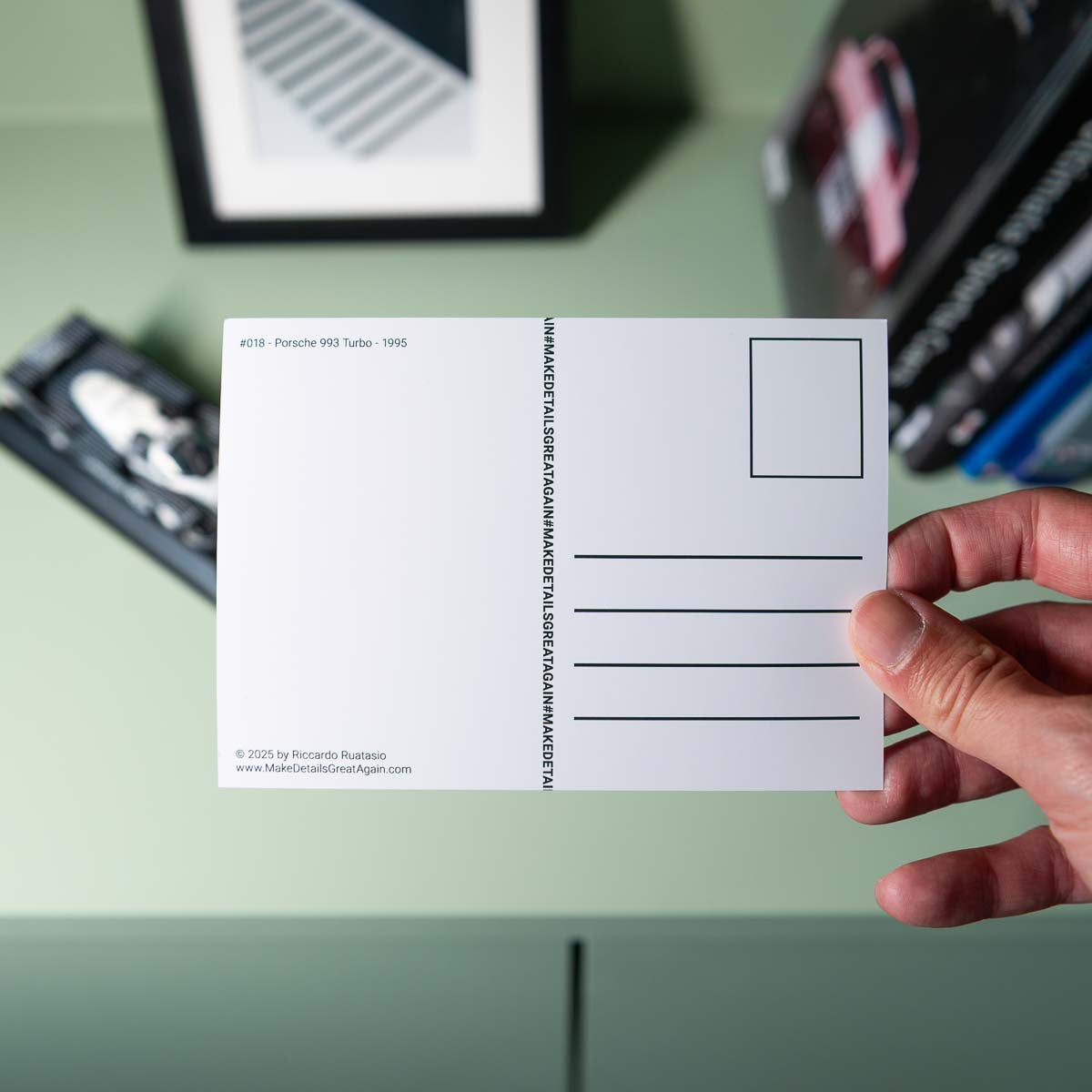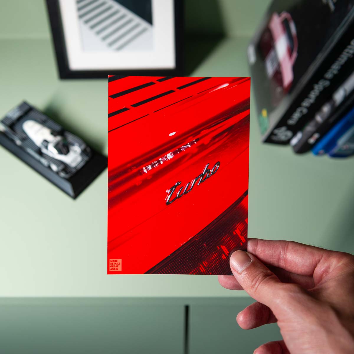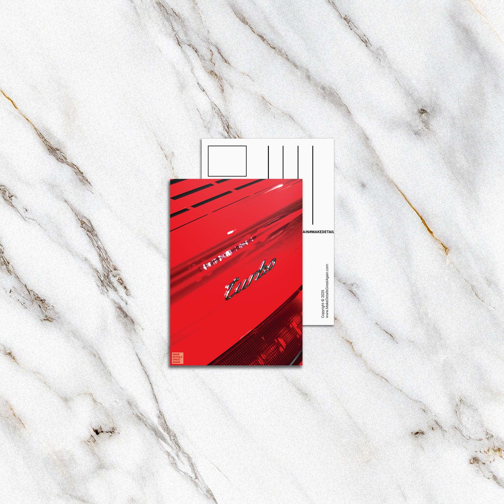 Celebrate the artistry of automotive design with this stunning postcard featuring a close-up detail of the gorgeous Porsche 911 Turbo.