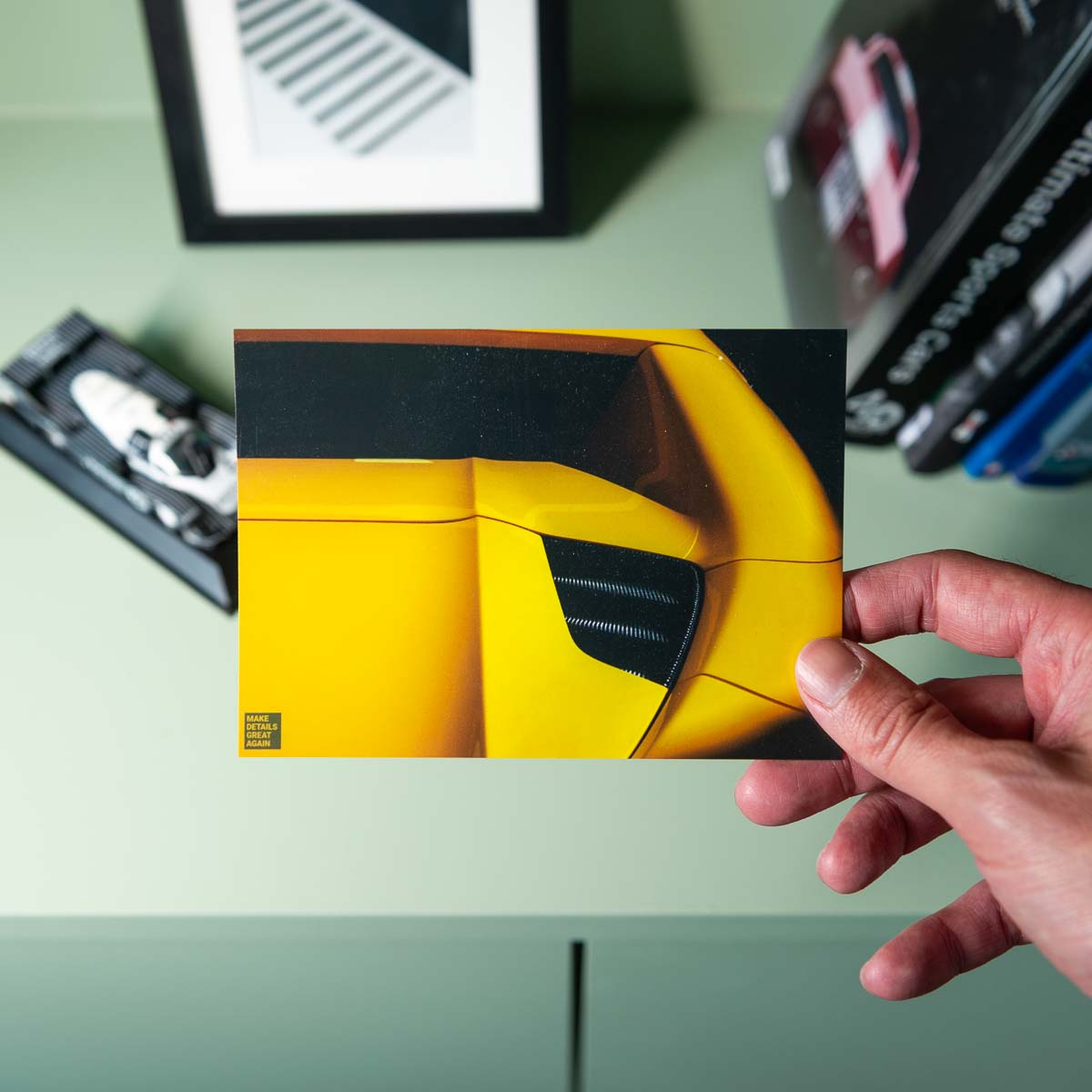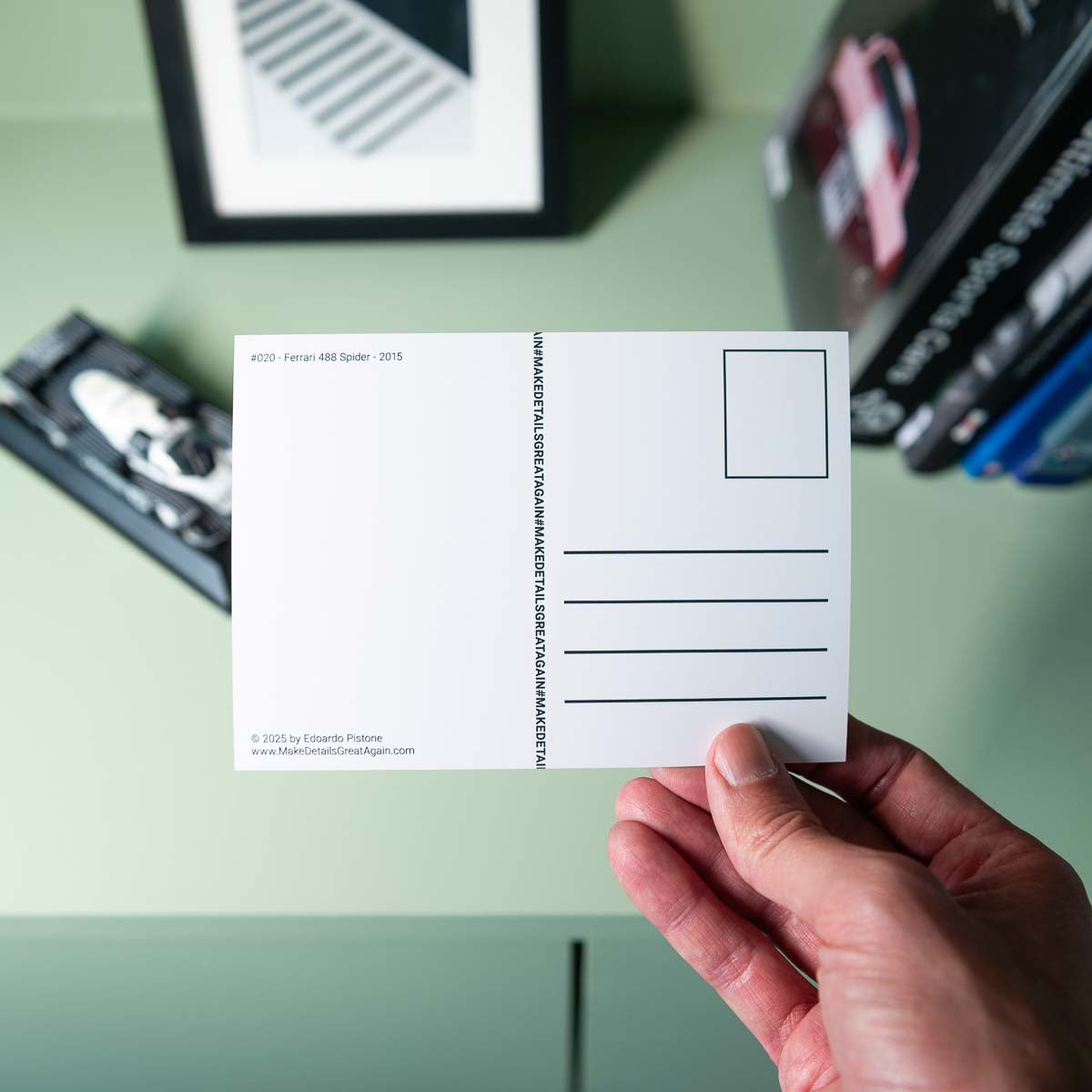 Celebrate the artistry of automotive design with this stunning postcard featuring a close-up detail of the glamorous 488 Spider.